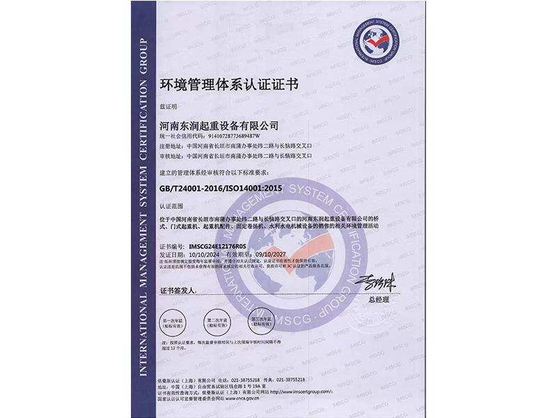 環(huán)境管理體系認(rèn)證證書(shū)