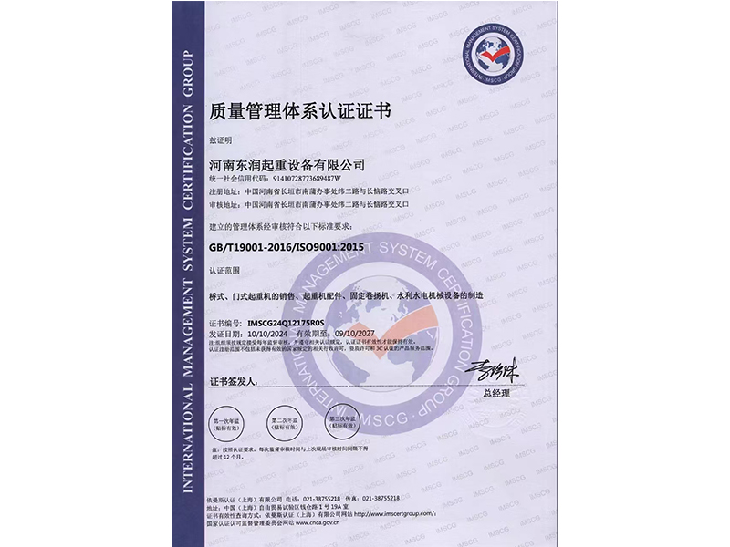 質(zhì)量管理體系認(rèn)證證書(shū)