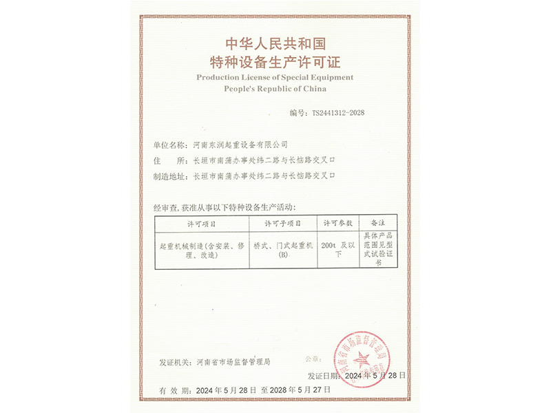 特種設(shè)備生產(chǎn)許可證
